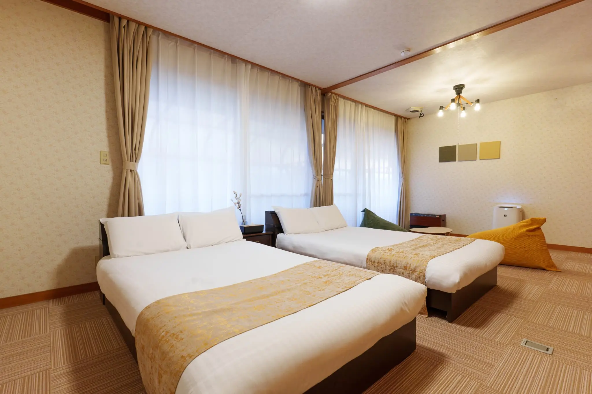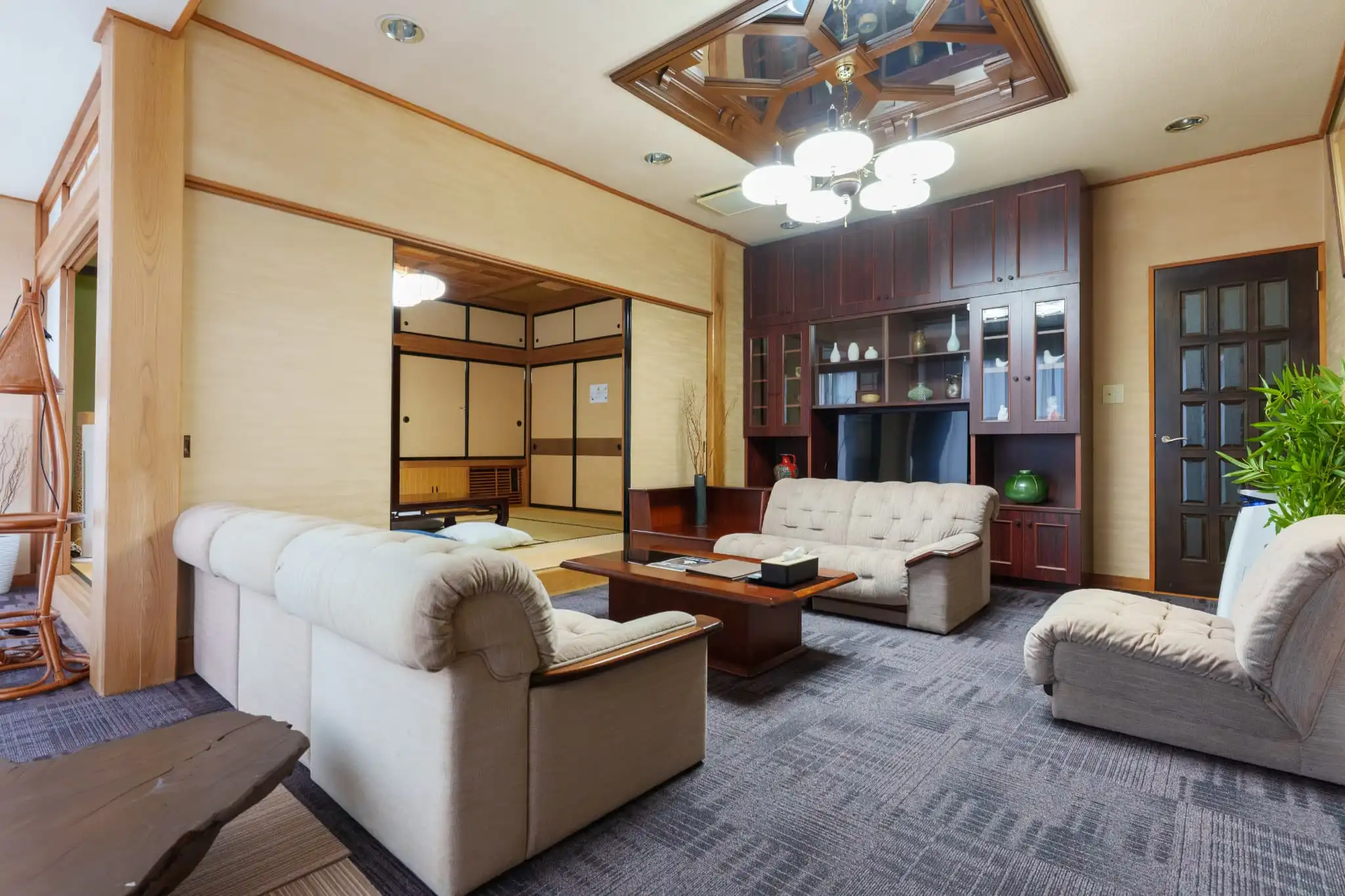 古民家宿「和がと」の客室は、富士山を望むゆったりとした空間です。庭園の植物の風景、昔ながらの日本家屋の温もりと畳の落ち着きが、心地よい滞在を演出します。
